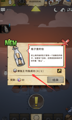 3、釣上鯽魚(yú)王,獲取瓶中信件完成任務(wù)。