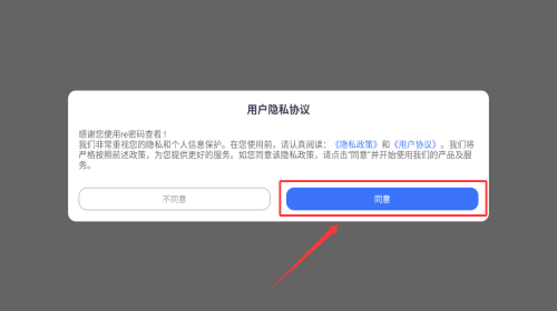1、點擊同意按鈕,授權(quán)隱私協(xié)議繼續(xù)使用。