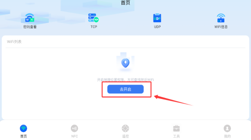 2、在首頁點擊藍色去開啟按鈕查詢網(wǎng)絡(luò)。